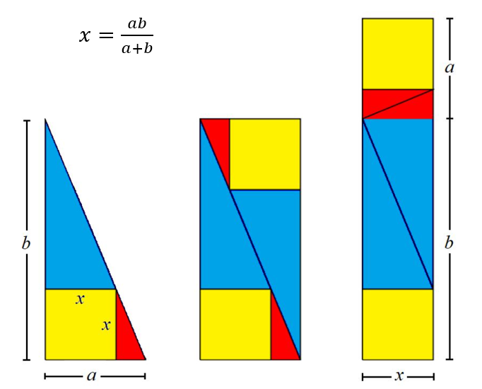De eerste figuur toont op de typisch Griekse manier, d.w.z. via een meetkundige figuur aan